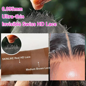 3.Lace Color: Real HD Lace Invisible 0.1mm Ultra-thin Frayed Ends Lace Front Wig Pre Plucked Tiny Knots